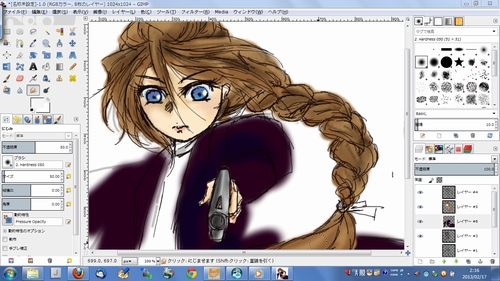 作業工程含めてうpるつもりは毛頭無かったんで、ざっくり主線描いて(しかもやっつけなんで未完・爆)衣服と本体のレイヤー二枚編成でほぼ一発重ね塗りとか割とルーズな真似してたら何故かこのような有り様に。