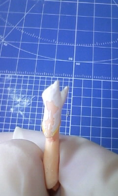 固まったのを確認し、サンドペーパーなどで削って元のパーツと均していきます。