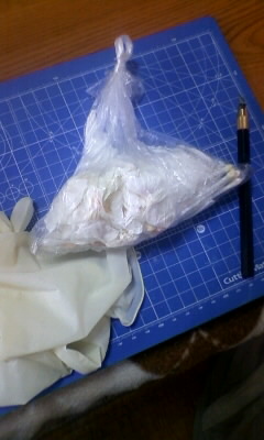 なお、塗装を剥がす為に使った綿棒やティッシュの残骸ですが、一応↓な感じでビニールで密封して捨てましょう。