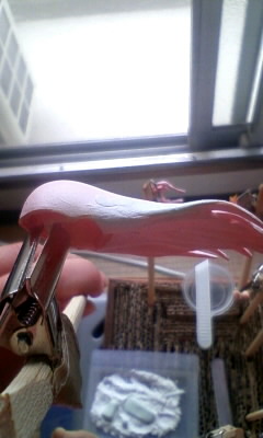 で、案の定というかやっぱり問題発見>型に材料(液体にしたPVC)を流し込んだ時にできる事がある凹凸(バリ)です。今回、目立ってたのは3箇所でした。