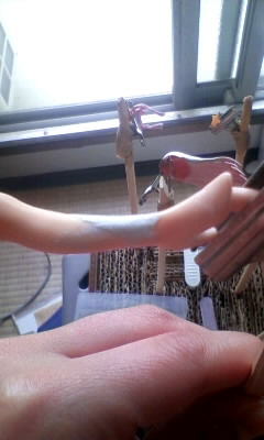 足だけ(目測を誤って・爆)パテが少なかったようで、磨いたらちょっと気泡が残っちゃったんですが、ちょっと実験したい事があるんで敢えてこのままにします。