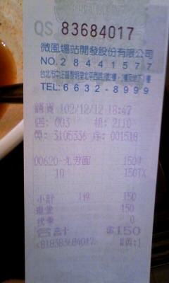 いわゆる牛肉麺屋のレシート、臺鐵のフードコートだけど(ぉ