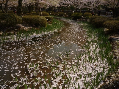 東松照明氏の写真集に、やっぱり水に浮いてる桜の花びらって構図があります。確か『さくら桜サクラ 66』だったかな?