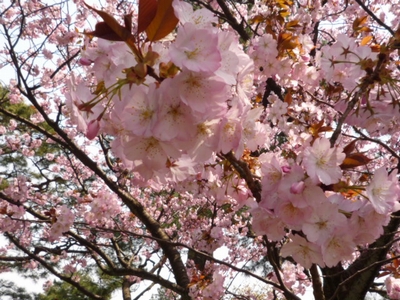 山桜や染井吉野とは違った趣きの、濃いい色の桜。
